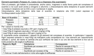 Per completezza su quanto detto sinora, relativamente a K, Ca e Mg, è importante ricordare ciò: