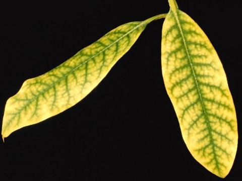 Si manifesta con il solito ingiallimento intervenale, ma a differenza di ferro e magnesio, sembra che non porti mai alla necrosi.