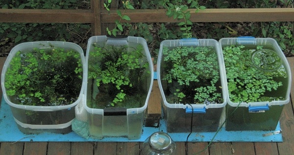 Vasche dall’allevamento (2018). Utilizzo le piante per purificare l’acqua per i pesci.
