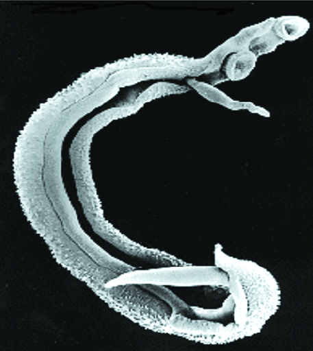 Si tratta di Schistosoma, parassita che vive immerso nei grossi vasi arteriosi intestinali umani e dei poveri ruminanti!