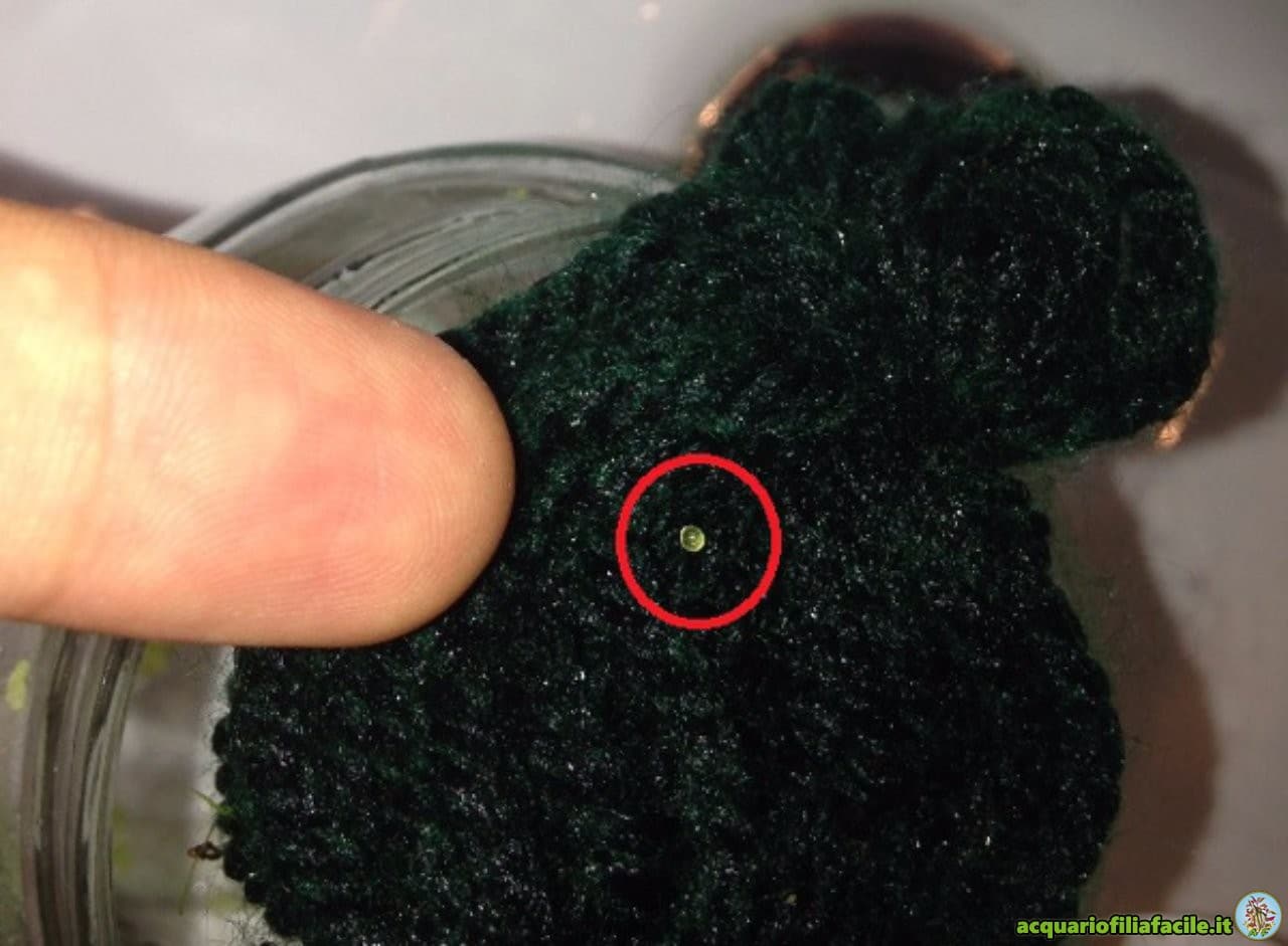 Dopo la deposizione, le uova possono essere rimosse con o senza il mop e riposte in altro recipiente. Qui, dopo un paio di settimane (ma dipende dalla temperatura), dovrebbero iniziare a schiudere.