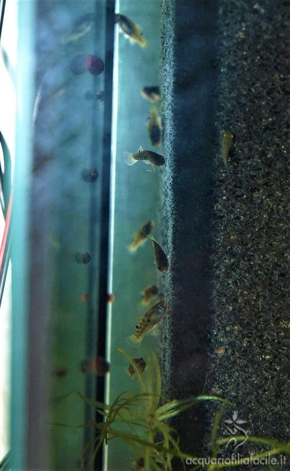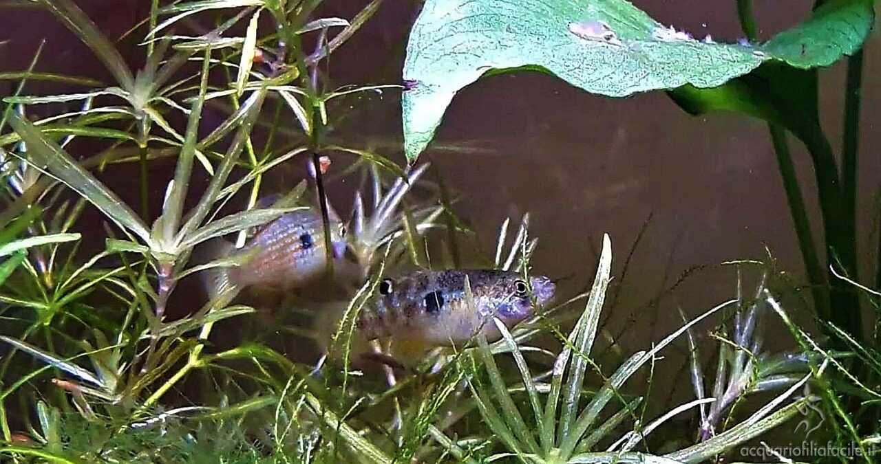 Da due femmine di Jordanella floridae ho ottenuto deposizione copiose e regolari e decine di avannotti. Sono pesci estremamente prolifici e molto attivi, riproduttivamente parlando, dall’inizio della primavera fino all’autunno. Per avere un buon successo riproduttivo è stato fondamentale alimentare correttamente e abbondantemente i riproduttori e mantenere condizioni di allevamento sempre di buona qualità grazie a regolari cambi d’acqua.