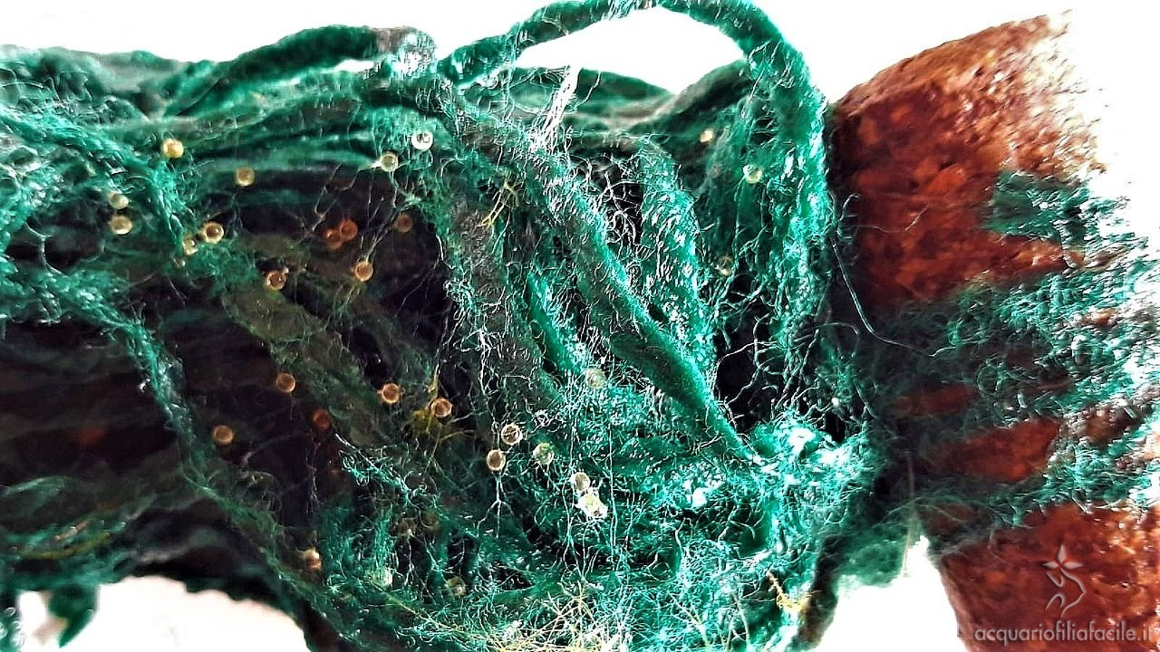 A questo punto le uova andrebbero recuperate dal mop e messe in un’altra vasca o in un altro contenitore con un’acqua avente le stesse caratteristiche di quella dove i pesci hanno deposto.