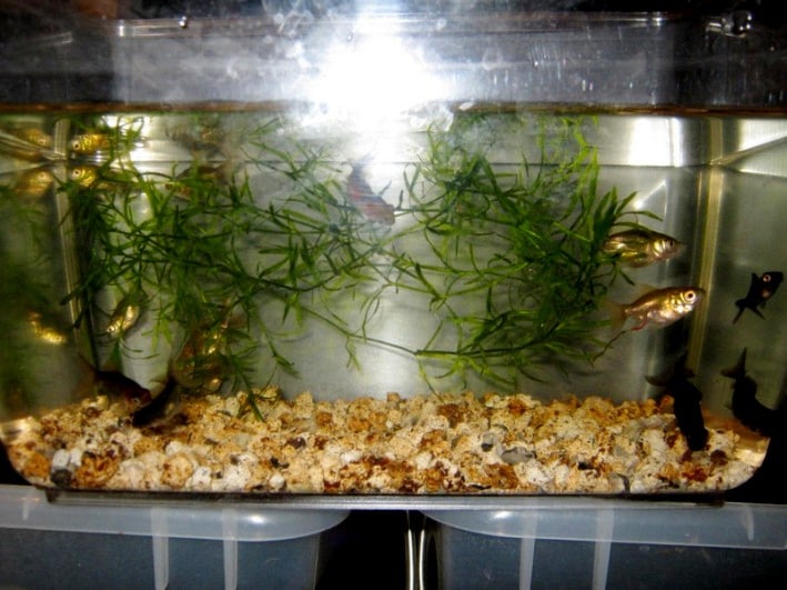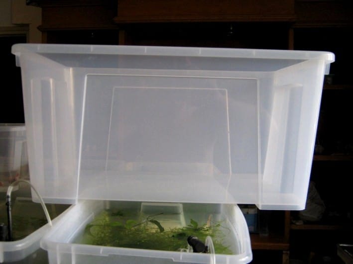 Si tratta di preparare con largo anticipo una vaschetta da 20l, con filtro perfettamente maturo e funzionante, in cui gli avannotti trascorreranno i primi 2/3 mesi della loro vita.