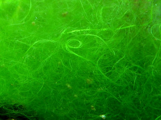 In base al movimento dell’acqua, possono distendersi come capelli o formare grovigli come nell’immagine qui sotto, in cui si intravedono anche parecchie lumachine del genere Physa.