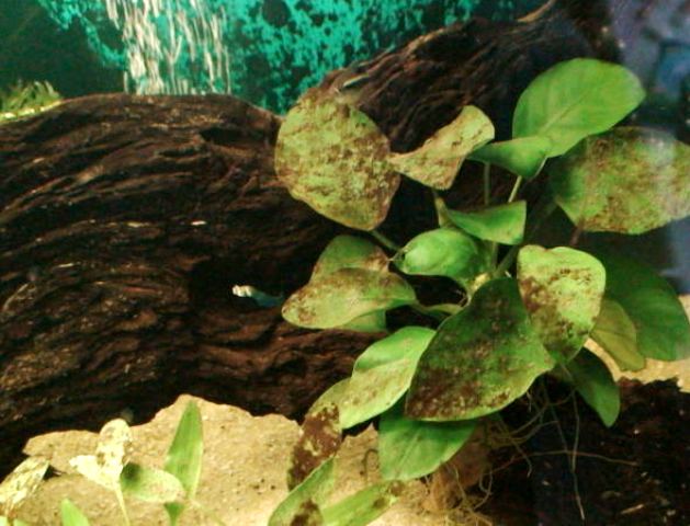 Le diatomee si presentano spesso come una fanghiglia marrone, che copre foglie di piante ed elementi di arredo.