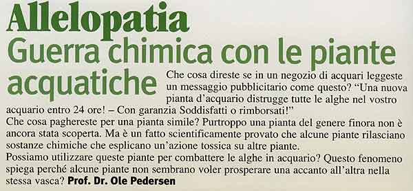 …Ecologia dell’Acquario di Piante, in cui propose di sfruttare l’allelopatia per contrastare lo sviluppo delle alghe.