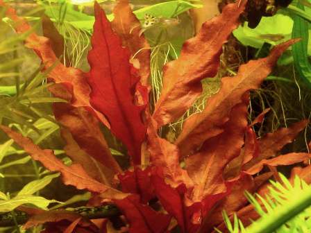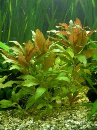 E’ l’unico caso di Alternanthera con colore adattabile. Si passa dal rosso acceso al verde scuro in base alle condizioni di luce, perfino sulla stessa pianta, proprio come farebbe una Ludwigia.