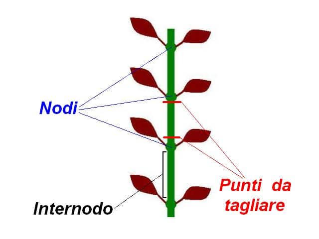In questo caso, lo stelo va tagliato due volte: la pianta madre deve terminare con un nodo, e la figlia deve partire con un altro.