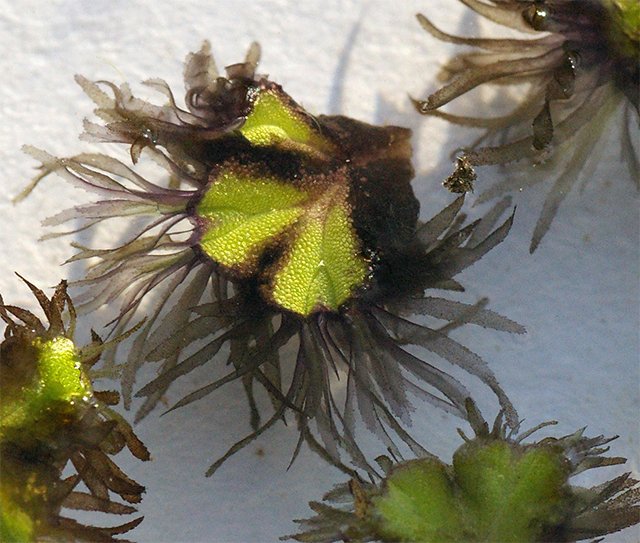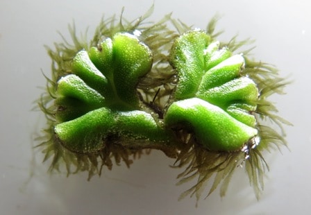 Tornando alla forma galleggiante, quella che ci interessa, possiamo notare i fitti rizoidi, simili a radici, con cui la pianta si nutre dalla colonna d’acqua.