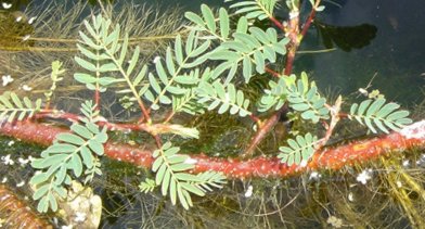 Rimane piuttosto bassa e le radici si propagano a partire dal fusto spugnoso, color rosso mattone, spesso fino ad 1cm e lungo fino a 5 metri, che striscia orizzontale lungo la superficie dell’acqua.