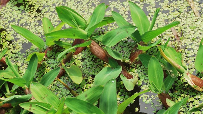 I fusti galleggiano sulla superficie grazie ai piccioli carnosi; in prossimità dei nodi crescono delle lunghe e folte radici.