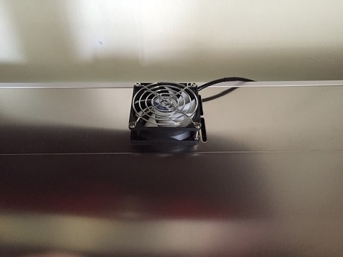 Nel coperchio posteriore è stata realizzata una griglia che permette l’areazione forzata tramite una ventola da computer.