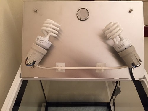 A quello più grande sono state applicate due lampadine CFL, ognuna da 12 W.