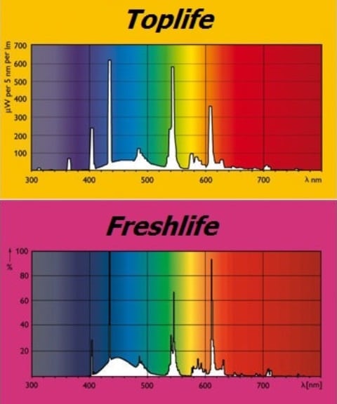 In dotazione troviamo 1 Toplife da 5000 K ed 1 Freshlife da 10000 K.