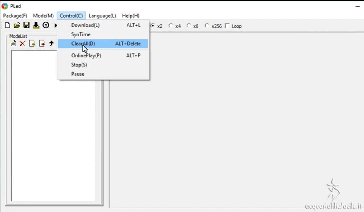 Per verificare che la connessione tra PC e centralina sia riuscita, aprite il software e, nella schermata iniziale, attivate il comando Clear All nel menu Control.