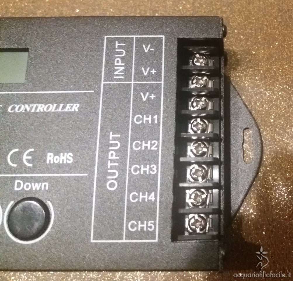 - i morsetti CH1, CH2, etc… sono i negativi da collegare ognuno ad un dispositivo. Tramite questi canali piloteremo ogni linea separatamente.
