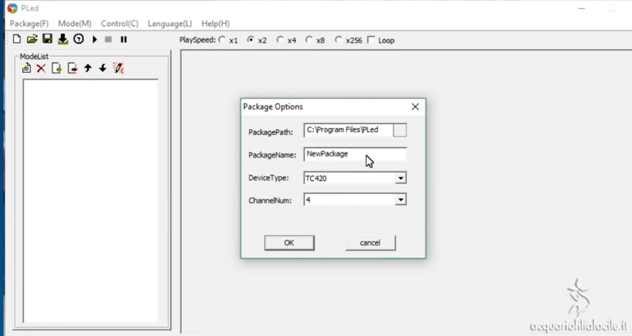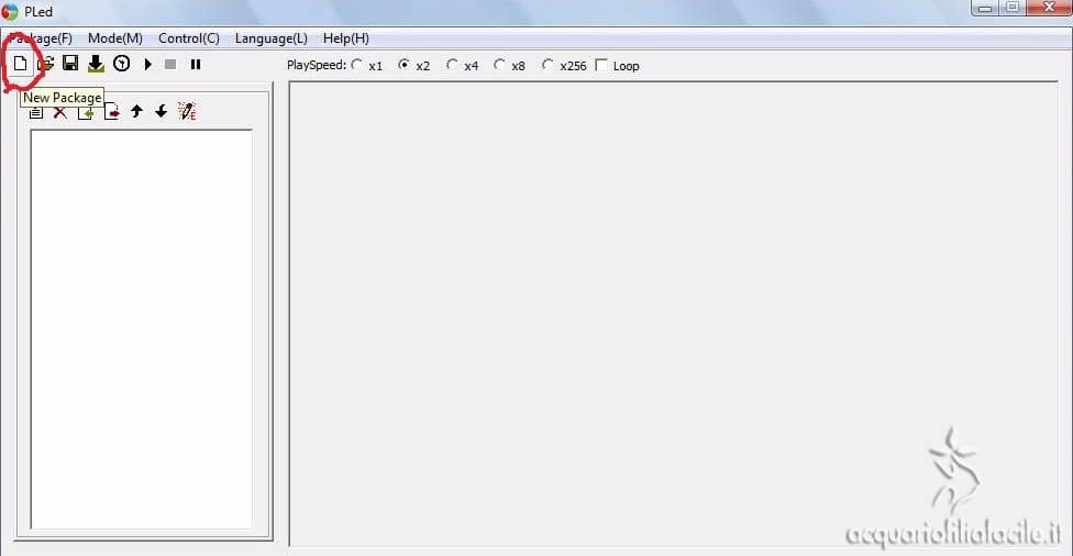 Iniziamo creando un nuovo set di istruzioni, cliccando sull’icona foglio bianco oppure, dal menu Package, New Package.