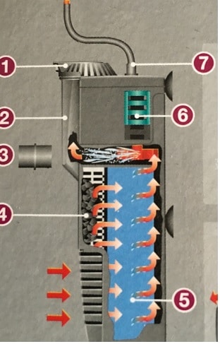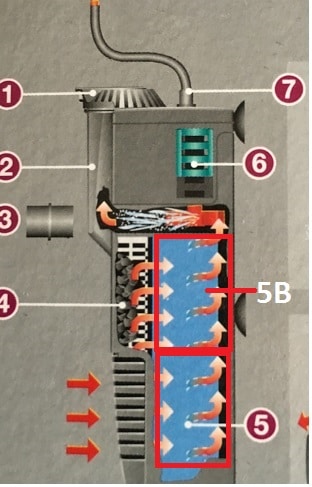 Il filtro, una volta modificato, prevedeva quindi spugna (4), spugna (5) e cannolicchi (5B).