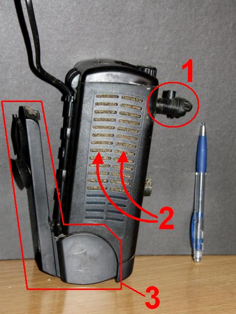 - La griglia di aspirazione, indicata dal 2, è situata sui fianchi del filtro, da entrambi i lati. Questo crea qualche problemino, a mio avviso, ma lo vedremo in seguito.