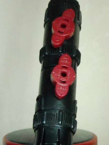 Sul corpo del filtro principale, viene collegato un capo del tubo di mandata; all’altro capo c’è una parte terminale a “becco di flauto” e snodabile, che consente di orientare il getto d’acqua nella direzione voluta.