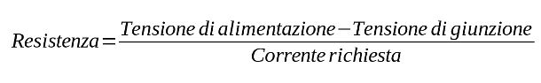 Il valore appropriato di questa resistenza si può calcolare con la seguente formula…