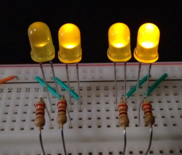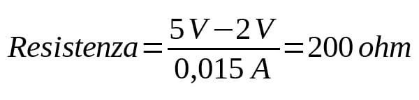 Se non abbiamo la resistenza del valore giusto, a disposizione, possiamo prendere quella con il valore maggiore più vicino, ovvero quella da 220 ohm, in questo caso.