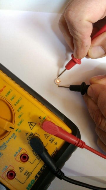 Se il LED è funzionante e avete rispettato la polarità, emetterà una debole luce; in caso contrario, è rotto.