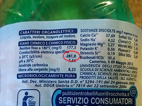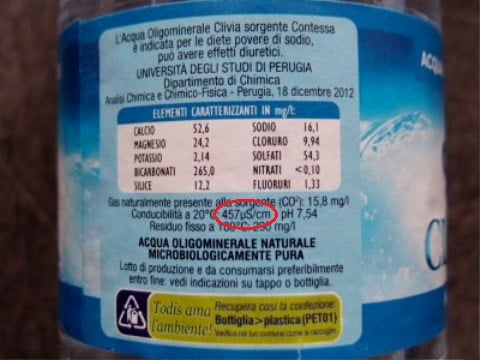Inoltre le analisi sono effettuate a campione: la conduttività nella nostra bottiglietta potrebbe essere leggermente diversa da quella in etichetta, per una serie di fattori naturali (periodi di piogge intense, per esempio).