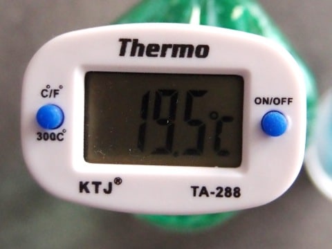 Per essere sicuro di aver fatto le cose per bene, misuro anche la temperatura della soluzione col termometro da cucina: segna 25,2 °C.