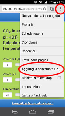 Basta accedere alla pagina del calcolatore dal browser del vostro cellulare e dal menu selezionare “Aggiungi a schermata Home” (potrebbe cambiare in base al dispositivo usato), una volta salvato potete accederci semplicemente con un touch!